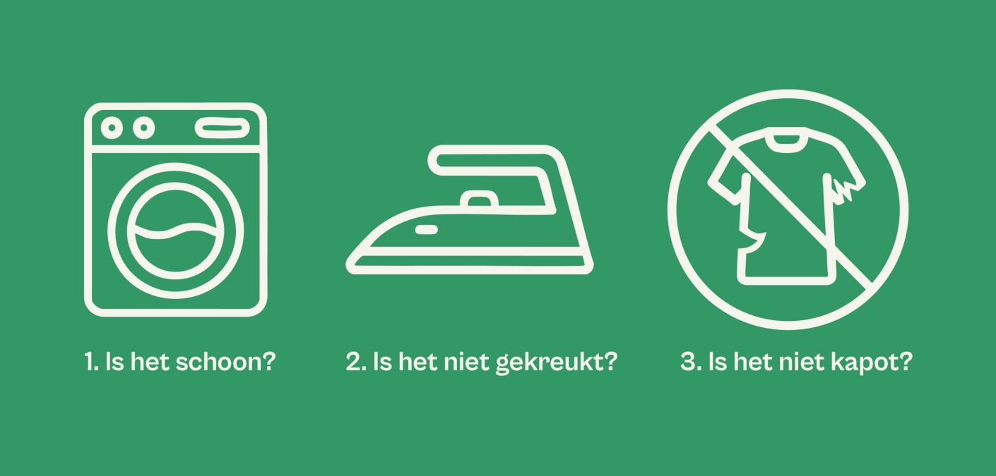 We moeten van kwantiteit naar kwaliteit. Daarom doen we een dringend beroep op al onze trouwe kledingdonateurs. Jij kunt ons enorm helpen! Door vooraf de kleding te checken en daarbij heel kritisch te zijn op wat je aan ons doneert: